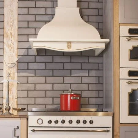קולט אדים ארובה צמוד קיר בסגנון כפרי מבית בומפני.