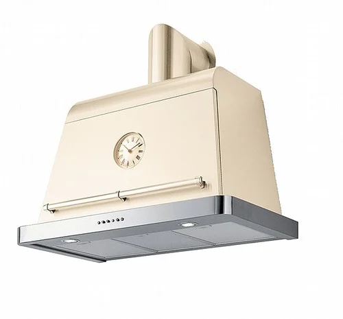 קולט אדים ארובה צמוד קיר 90 ס"מ | סגנון כפרי | הפעלת לחצנים בחזית | כולל פילטר פחם אקטיבי | גימור: נירוסטה, לבן עתיק, בורדו, שמנת ושחור